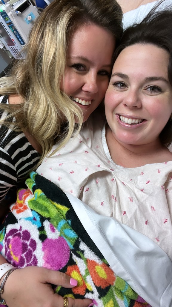 I have the best memories of the hours before delivery. My sister arrived at the hospital, and it was so fun having her, my mom, and Matt there to keep me company. The Proposal was the next movie on the TV, then Friends came on, and then the first day of the Masters.