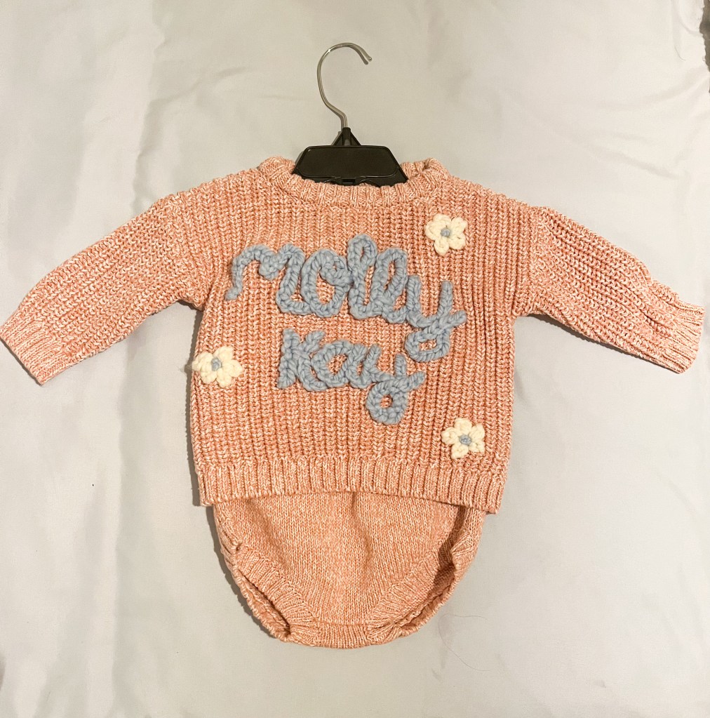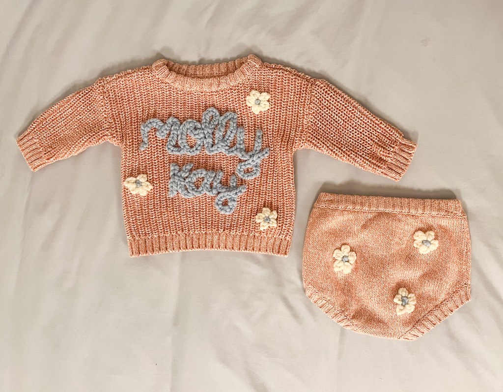 I have always loved embroidery, and when I first saw these sweaters, I knew I would be able to recreate them. I taught myself the stitch and practiced over and over. These sweaters are great for chilly days, name reveals, monthly milestone pictures, nursery decor, and so much more! Here are a few of the sweaters I have made recently. Prices vary, but they start at $45. Please email me at joyfulleigh.blog@gmail.com if you are interested!
