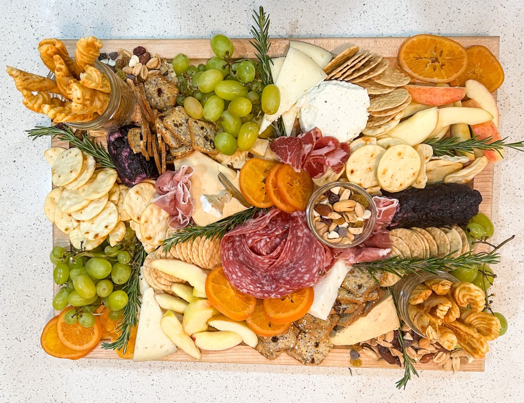 That evening I co-hosted a staff ladies and wives night. The party was not at our house, but I was taking care of the food. We like to host these nights to get the ladies together and introduce anyone new to the group. We just hired a new young adult pastor, so we wanted to introduce his wife to everyone. I made lemon bars and a charcuterie board and purchased brownies and chocolate chip cookies. I was so happy with how the board turned out!